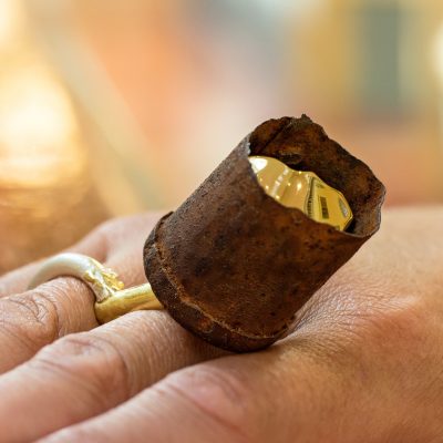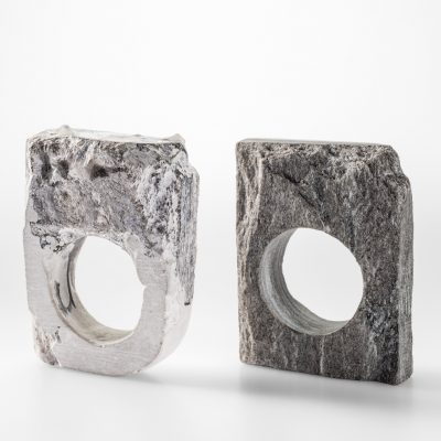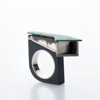 The rings in Milieu are a feature of the body of work that culminated in the award of my PhD. Their essence speaks of my ongoing research and interest into the materiality of objects and environments and their impact on people. I do so not only through material investigations, but also by examining the way in which we engage with our built and natural environments through the senses, and the role these encounters have on our memories.