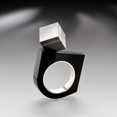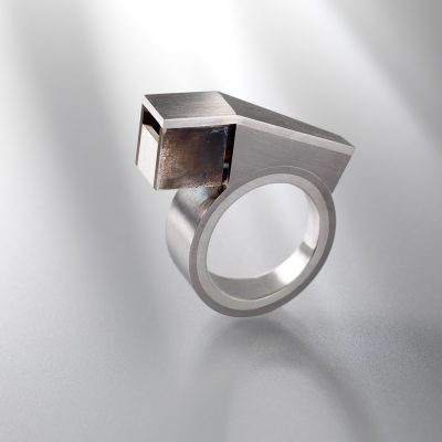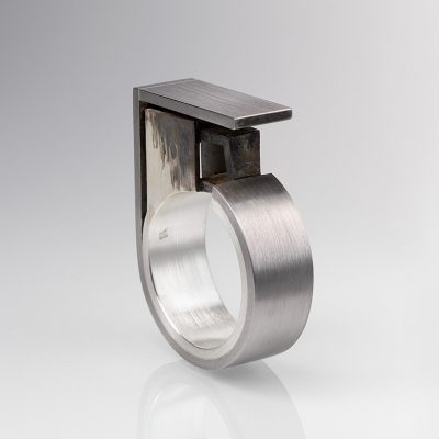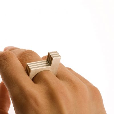 The rings featured under Archetype are part of the original body of work that instigated my interest in drawing relationships between the fields of architecture and jewellery.  The purpose of these disciplines is to provide people with a platform for lived experiences. Despite their opposing scale, these disciplines share a proximity by placing the  human body as a whole entity - body and mind- at the centre of their creative and utilitarian concerns. These early works are made from materials best known for their engineering capacities and combine craft making knowledge with digital technologies to showcase a unique architectonic aesthetic.