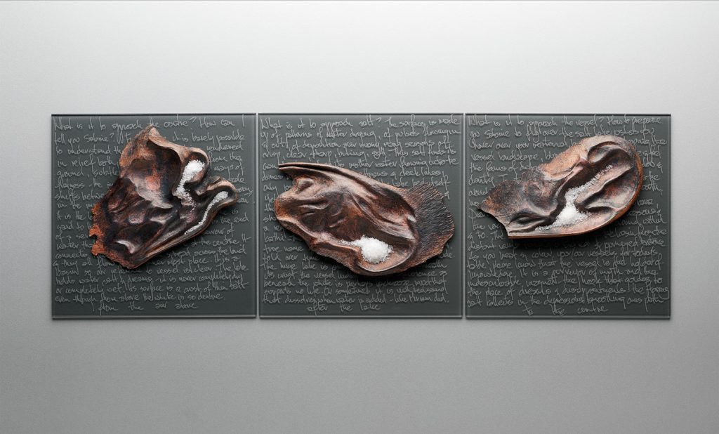HEAT TREATED COPPER; SANDBLASTED AND ENGRAVED GLASS; LAKE SALT | 2013