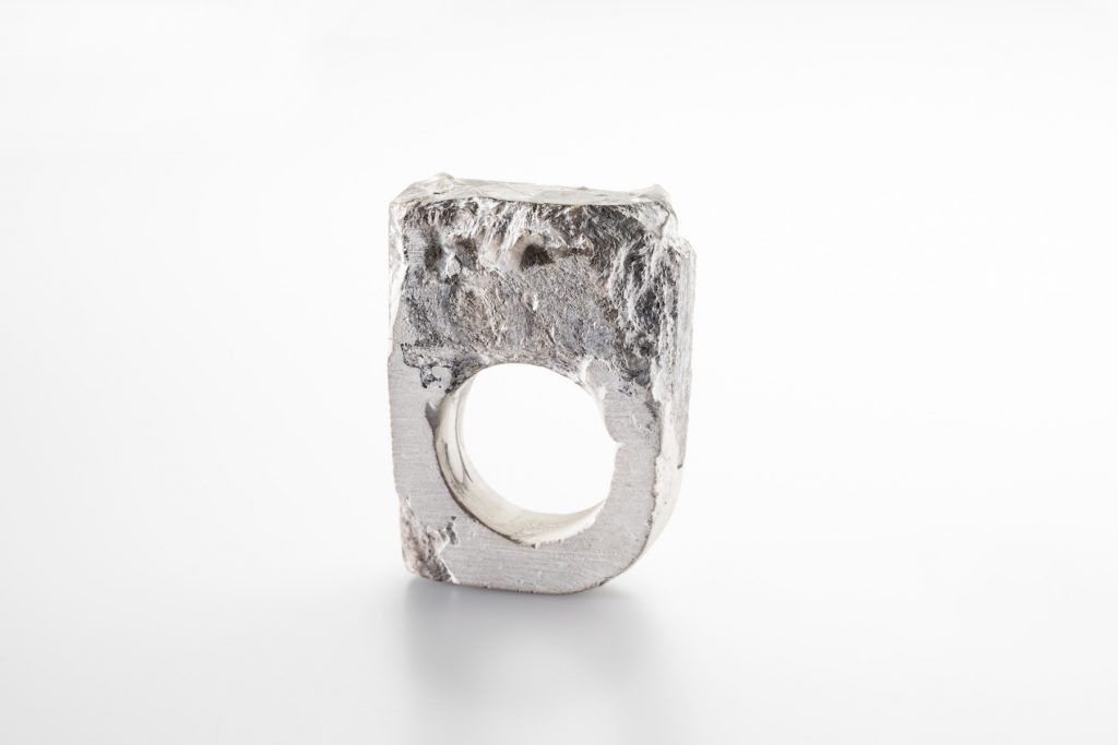 Vals Rock #3 speaks of the interrelationships between the natural and built environments. It does so through the melding of gneiss with concrete, but also as a ring, an object for the hand. The hand symbolizes labour, a manifestation of the strong connection between natural resources and the built world. Thus, the hand as a junction between thought and action, which performs activities consciously and unconsciously, becomes a symbolic site for the Vals Rock series of rings.